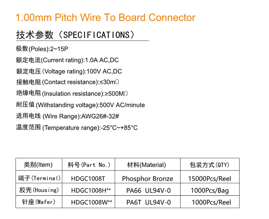 HDGC1008 Series 1.00mm Pitch (.039'')线对板连接器