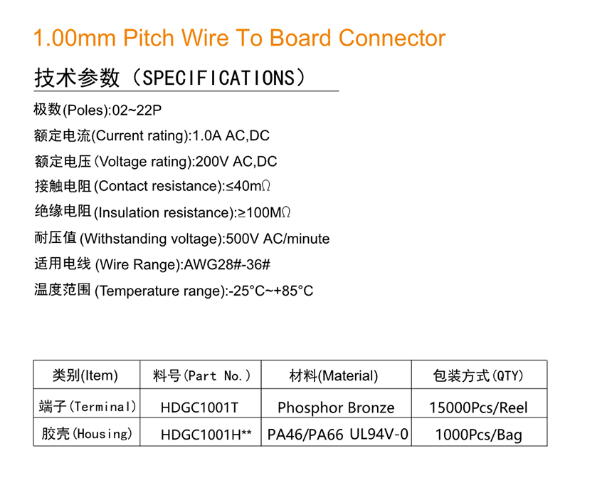 HDGC1001 Series 1.00mm Pitch (.039'')线对板连接器