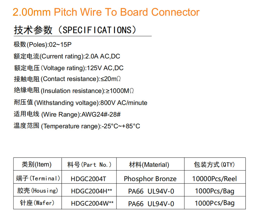 HDGC2004 Series 2.00mm Pitch (.079'')线对板连接器