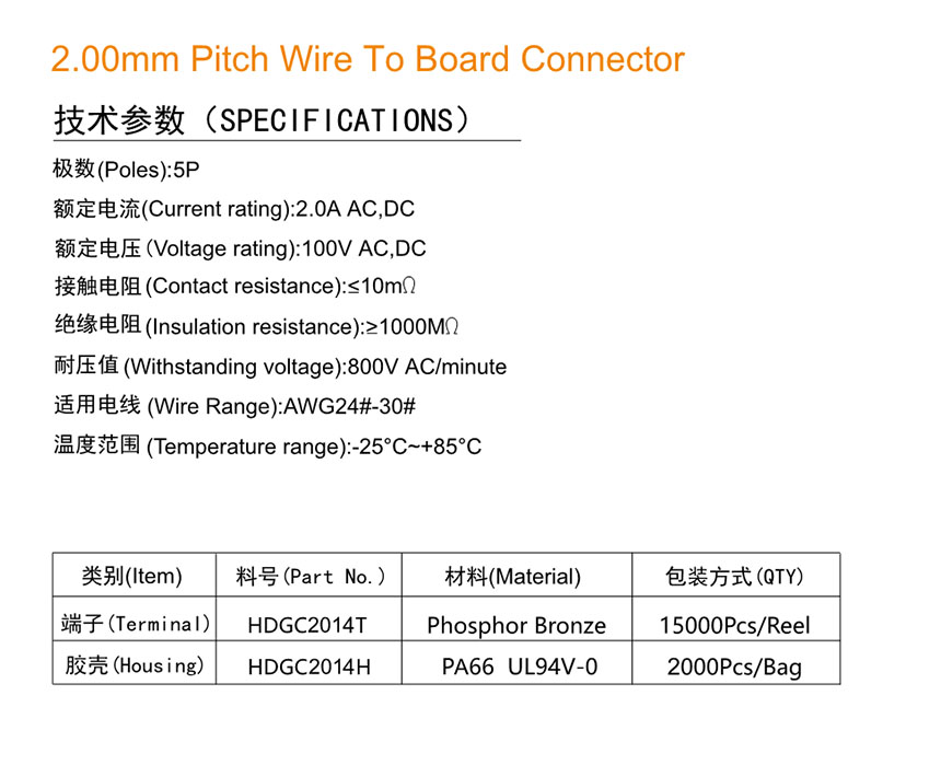 HDGC2014 Series 2.00mm Pitch (.079'')线对板连接器