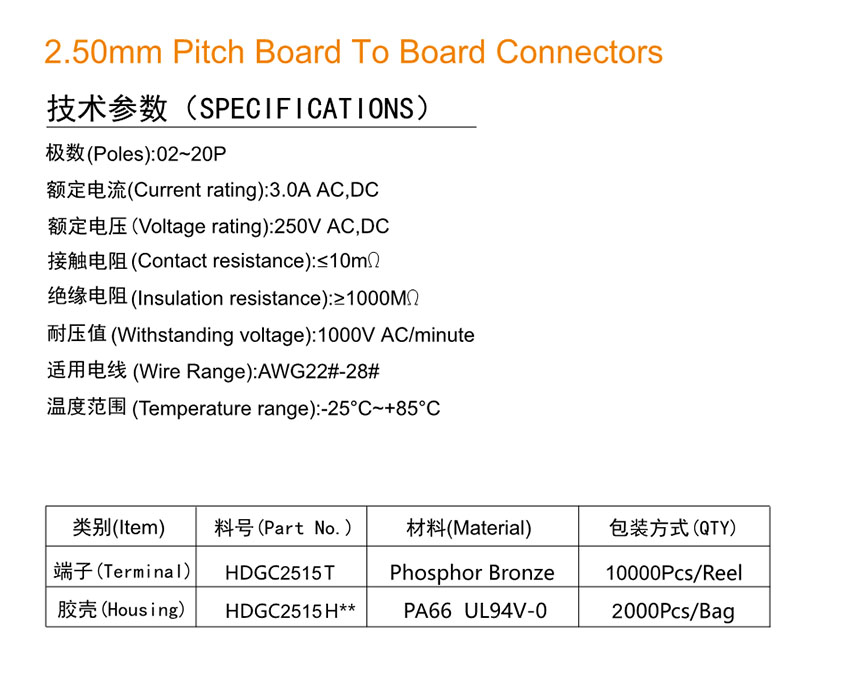 HDGC2515 Series 2.50mm Pitch (.098'')板对板连接器
