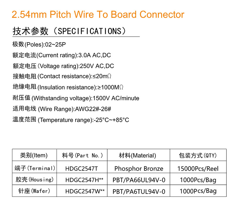 HDGC2547 Series 2.54mm Pitch (.100'')线对板、线对线连接器