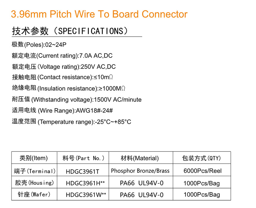 HDGC3961 Series 3.96mm Pitch (.156'')线对板连接器