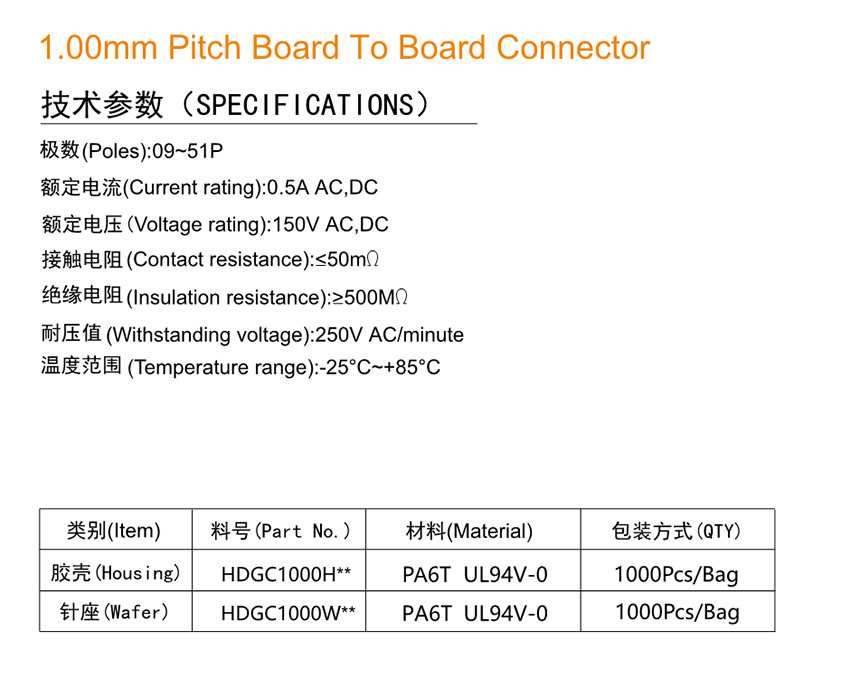 HDGC1000 Series 1.00mm Pitch (.039'') 板对板连接器