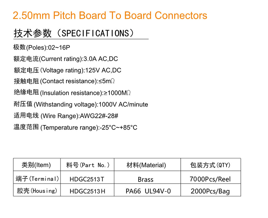 HDGC2513 Series 2.50mm Pitch (.098'')板对板连接器