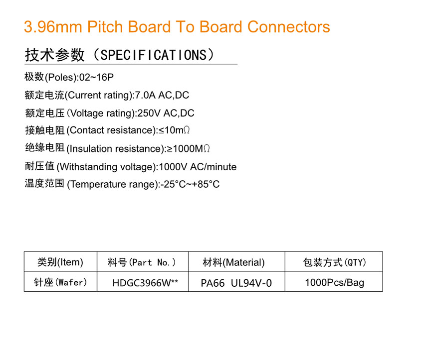 HDGC3966 Series 3.96mm Pitch (.156'')板对板连接器