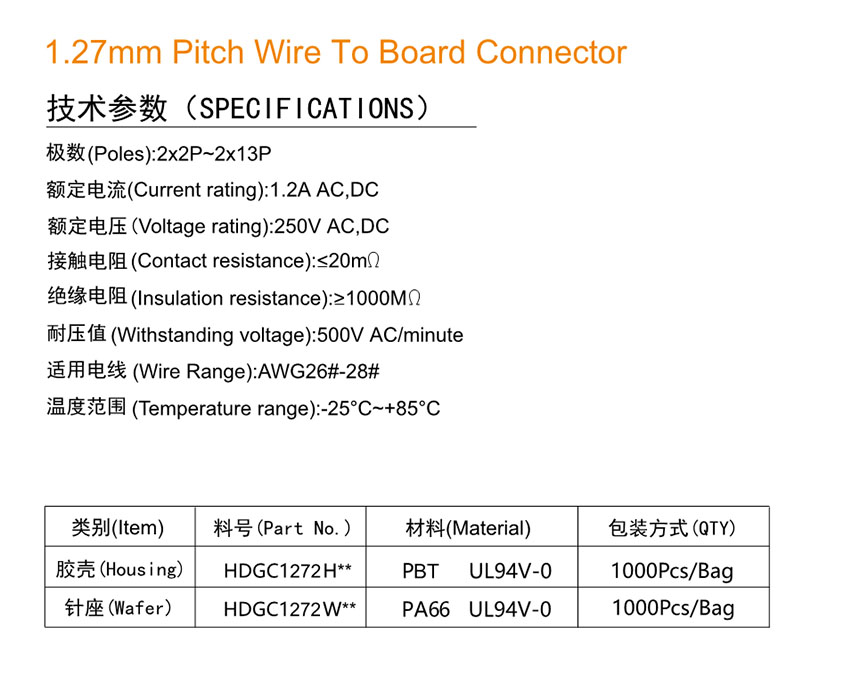 HDGC1272 Series -[1.27mm Pitch]刺破连接器