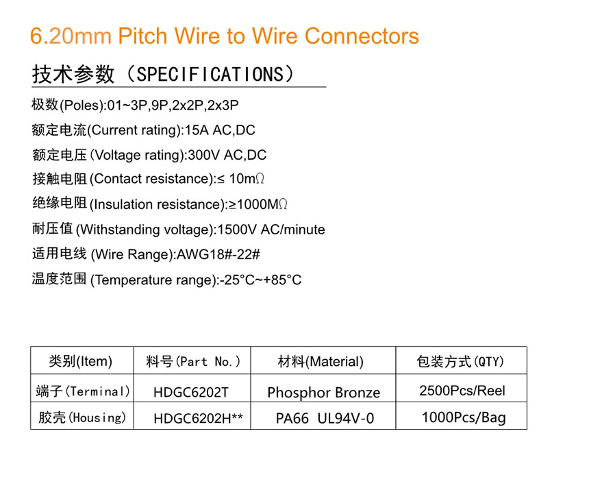 HDGC6202 Series 6.20mm Pitch (.244'')线对线连接器